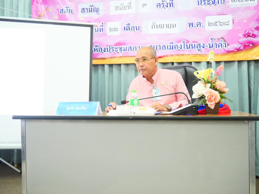 วันที่ 14 ตุลาคม 2568 เวลา 09.30 – 12.00 น. กองยุทธศาสตร์และงบประมาณ เทศบาลเมืองโนนสูง-น้ำคำ ได้จัดการประชุมคณะกรรมการพัฒนาท้องถิ่น เพื่อจัดทำร่างแผนการดำเนินงาน ประจำปีงบประมาณ พ.ศ. 2569 ณ ห้องประชุมสภาเทศบาล ชั้น 2 เทศบาลเมืองโนนสูง-น้ำคำ โดย นายอุดร สมต้น นายกเทศมนตรีเมืองโนนสูง-น้ำคำ เป็นประธานในพิธีเปิดการประชุม พร้อมด้วย นายเฉลิมพล ธารประเสริฐ ปลัดเทศบาลเมืองโนนสูง-น้ำคำ พร้อมคณะผู้บริหาร, หัวหน้าส่วนราชการและคณะกรรมการ เข้าร่วมในการประชุมครั้งนี้ด้วย