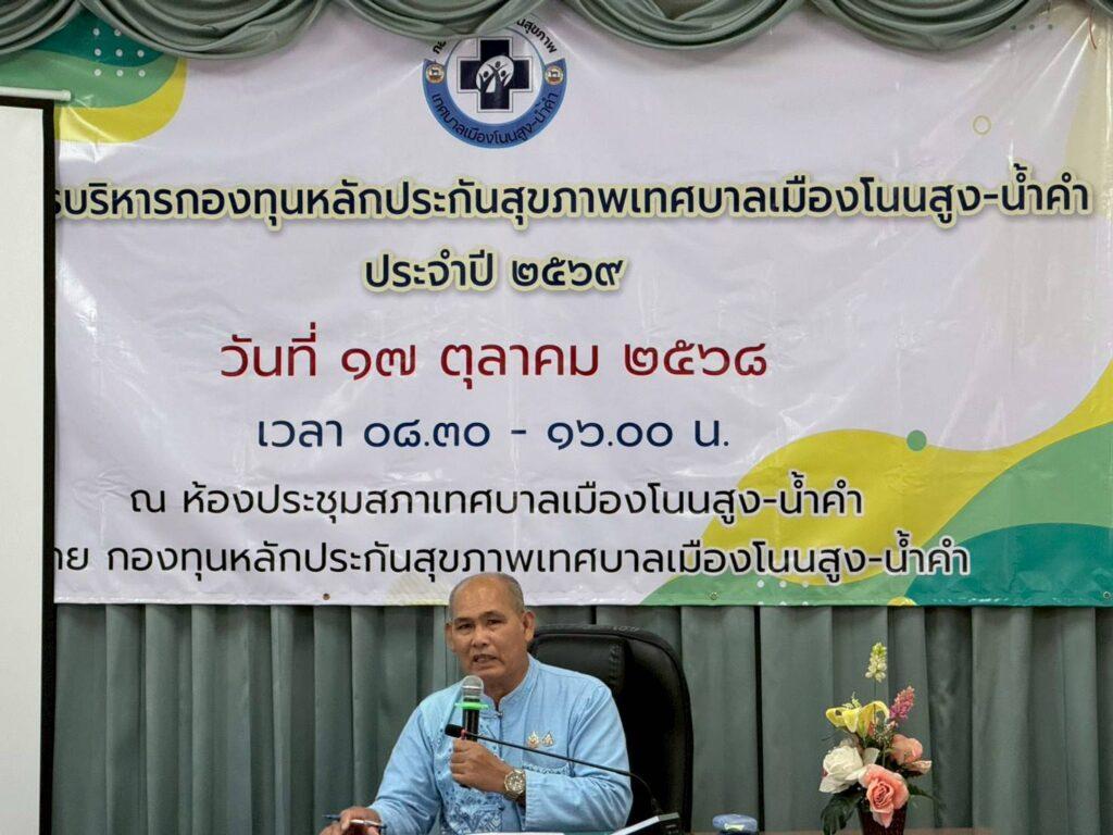 วันที่ 17 ตุลาคม 2568 เวลา 08.30 – 16.00 น. กองสาธารณสุขและสิ่งแวดล้อม เทศบาลเมืองโนนสูง-น้ำคำ ได้เปิดการอบรมโครงการบริหารจัดการกองทุนหลักประกันสุขภาพเทศบาลเมืองโนนสูง-น้ำคำ โดยวิทยากรจากสำนักงานหลักประกันสุขภาพแห่งชาติเขต 8 อุดรธานี นายธีระวัฒน์ เจริญชัยรัตนะ ณ ห้องประชุมสภาเทศบาลเมืองโนนสูง-น้ำคำ อำเภอเมือง จังหวัดอุดรธานี ชั้น 2 โดย นายอุดร สมต้น นายกเทศมนตรีเมืองโนนสูง-น้ำคำ เป็นประธานในการประชุม พร้อมด้วย นายเฉลิมพล ธารประเสริฐ ปลัดเทศบาลเมืองโนนสูง-น้ำคำ พร้อมคณะผู้บริหาร, หัวหน้าส่วนราชการและคณะกรรมการ เข้าร่วมในการประชุมครั้งนี้ด้วย