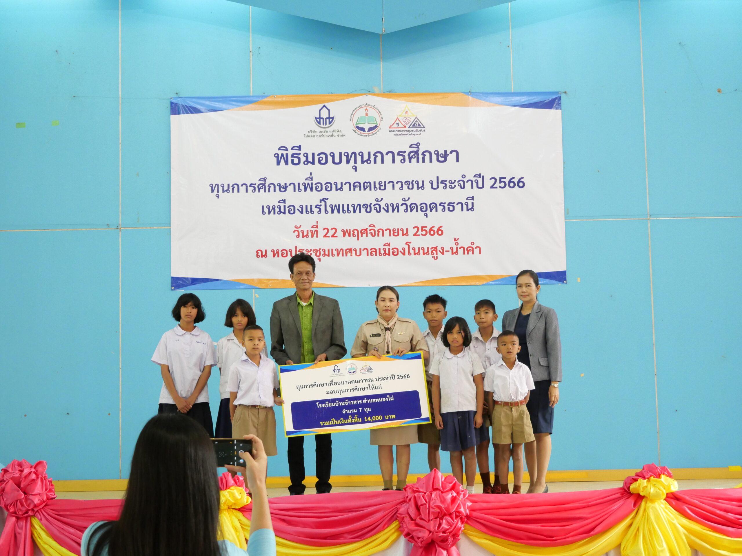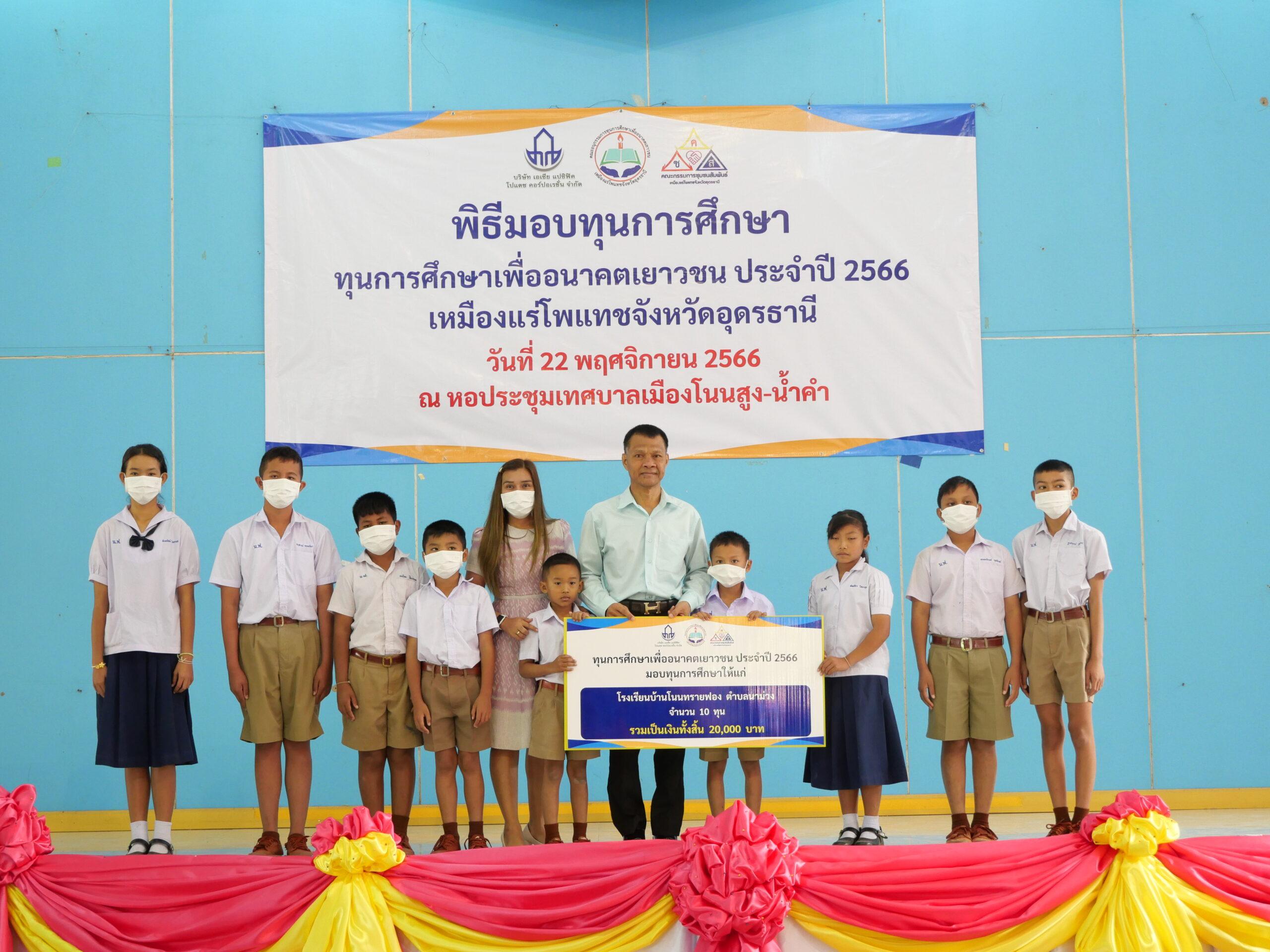 วันที่ 22 พฤศจิกายน 2566 บริษัท เอเชีย แปซิฟิค โปแตซ คอร์ปอเรชั่น จำกัด ได้จัดพิธีมอบทุนการศึกษาเพื่ออนาคตเยาวชน ประจำปี 2566 ณ หอประชุมเทศบาลเมืองโนนสูง-น้ำคำ โดยมีนายสุรศักดิ์ อักษรกุล รองผู้ว่าราชการจังหวัดอุดรธานี เป็นประธานในพิธีมอบทุนการศึกษาแก่สถานศึกษาในเขตประทานบัตร โดยนายอดิศักดิ์ ครสวรรค์ นายกเทศมนตรีเมืองโนนสูง-น้ำคำ พร้อมด้วยคณะผู้บริหารและหัวหน้าส่วนราชการ ได้ร่วมเป็นเกียรติในพิธีมอบทุนการศึกษาครั้งนี้