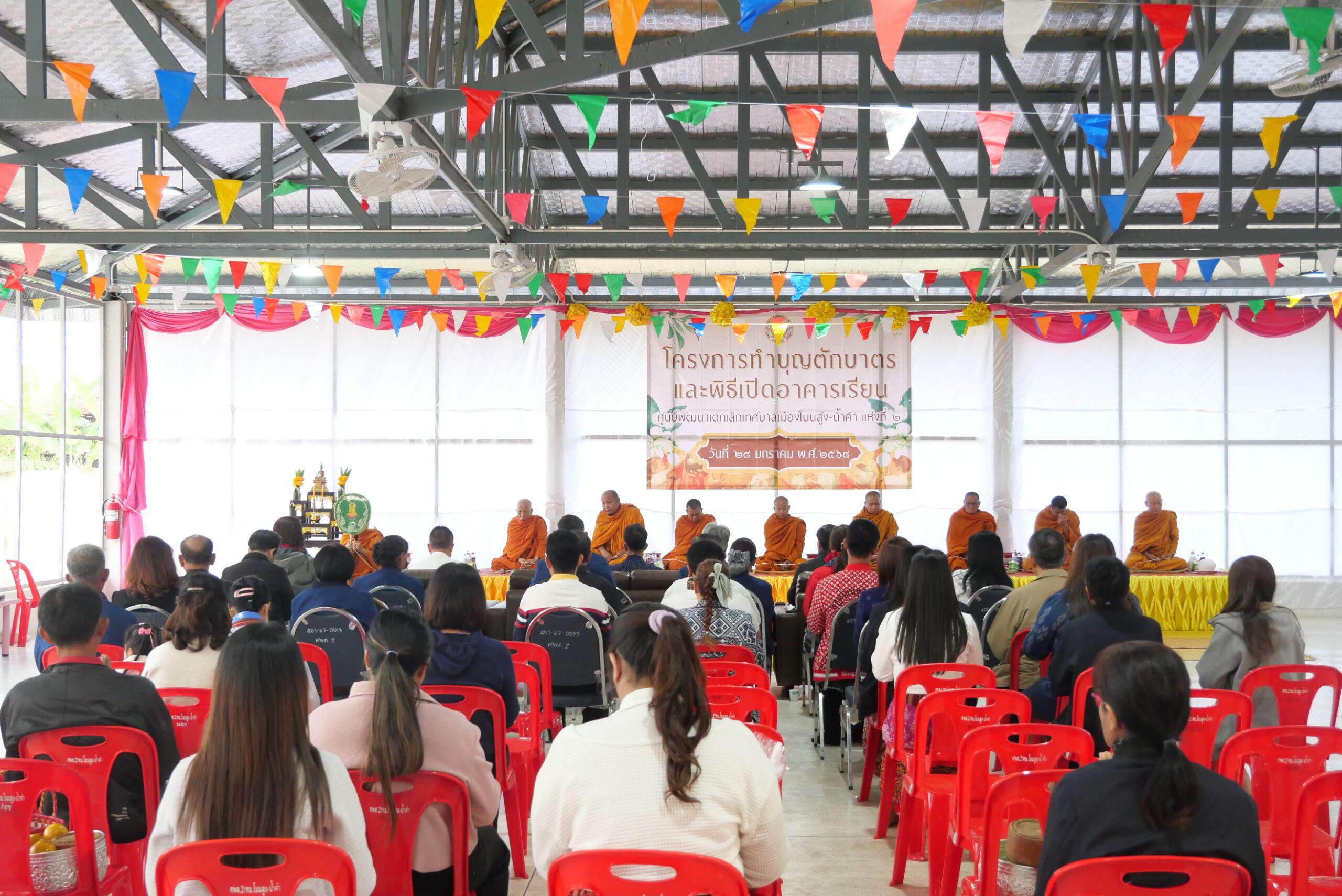 พิธีทำบุญตักบาตรและเปิดอาคารศูนย์พัฒนาเด็กเล็กเทศบาลเมืองโนนสูง-น้ำคำ แห่งที่ 2