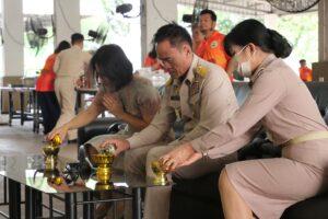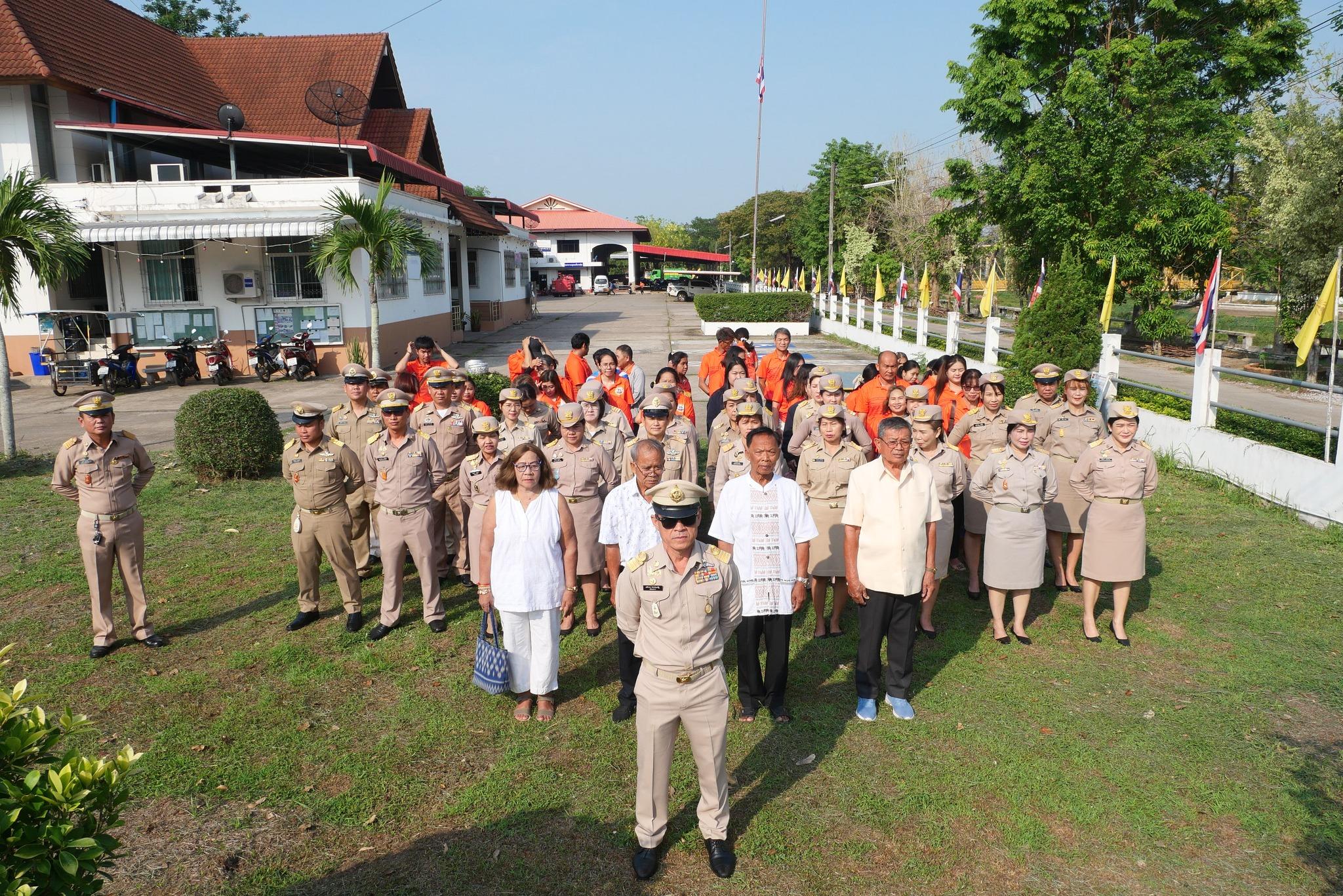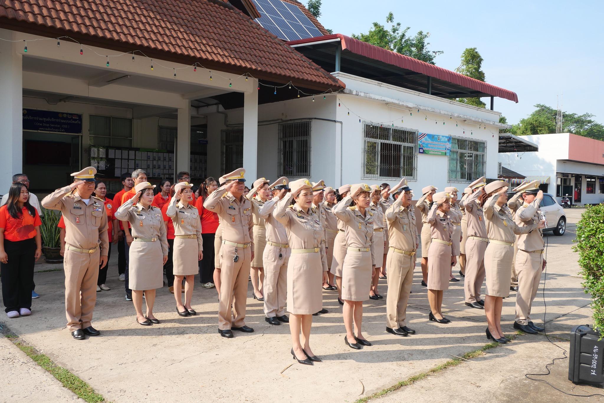 เวลา 09.00 น. ได้นำหัวหน้าส่วนราชการ พนักงาน ลูกจ้าง และผู้นำชุมชน ทำพิธีไหว้ศาลพระภูมิประจำสำนักงานเทศบาลฯ ต่อด้วยเข้าแถวเคารพธงชาติและกล่าวคำปฏิญาณตนเป็นข้าราชการที่ดี