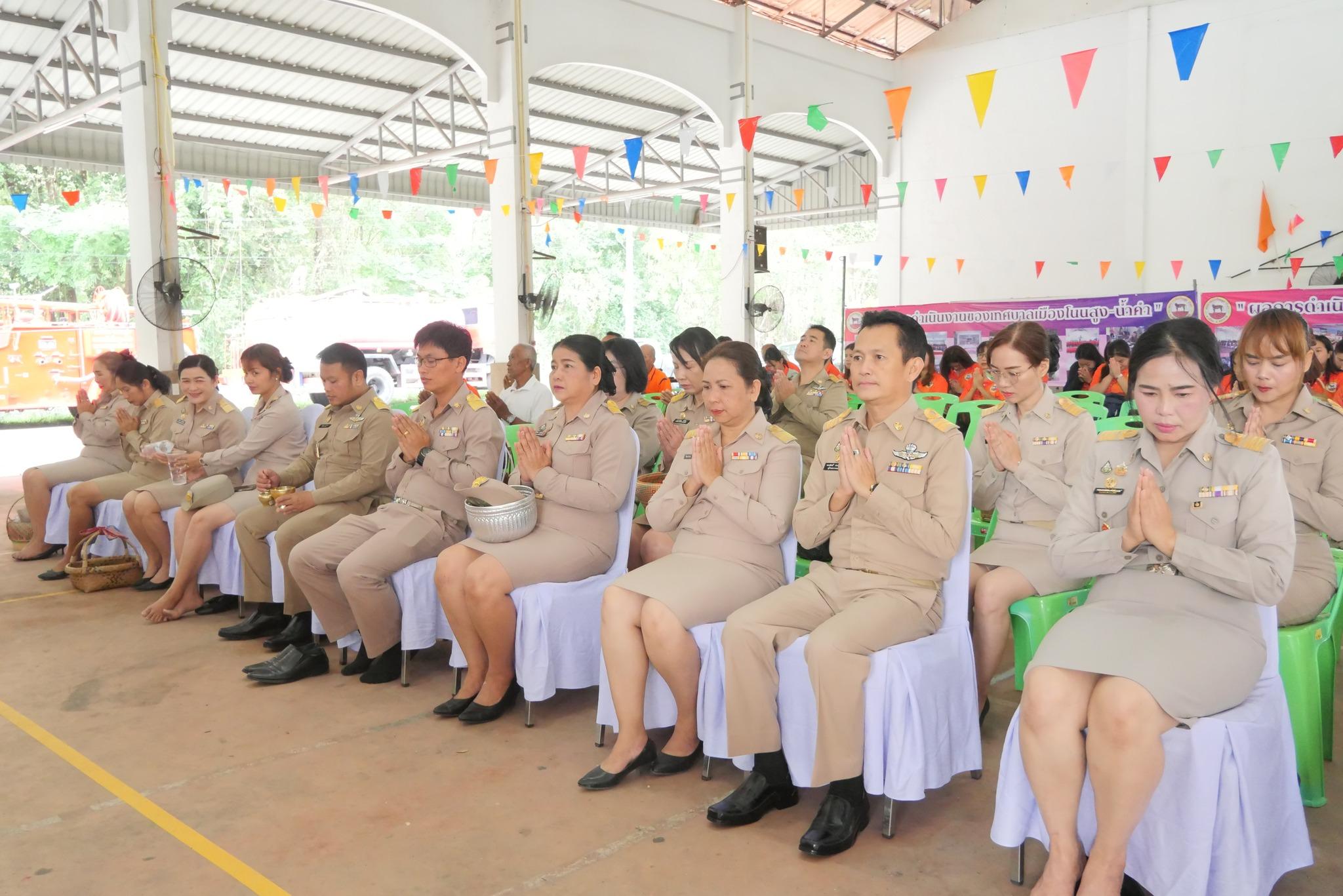 วันที่ 24 เมษายน 2568 เวลา 07.30 น. ณ หอประชุมเทศบาลเมืองโนนสูง-น้ำคำ นำโดยนายเฉลิมพล ธารประเสริฐ ปลัดเทศบาลเมืองโนนสูง-น้ำคำ ปฏิบัติหน้าที่นายกเทศมนตรีเมืองโนนสูง-น้ำคำ จัดโครงการกิจกรรมวันเทศบาล ประจำปี 2568 มีพิธีทำบุญตักบาตร ถวายภัตตาหารพระภิกษุสงฆ์ จำนวน 9 รูป กรวกน้ำ รับศีล ประพรมน้ำพระพุทธมนต์