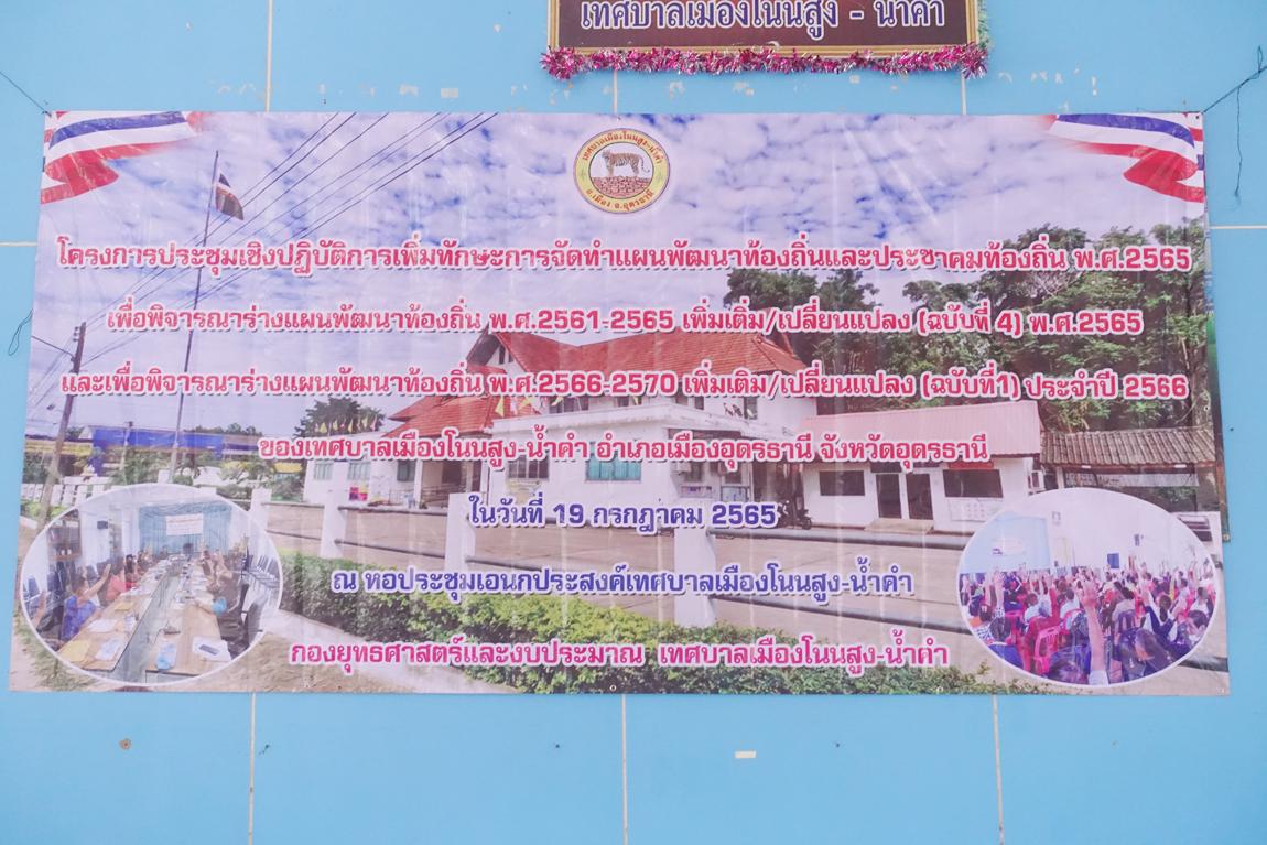 เทศบาลเมืองโนนสูงน้ำคำ ได้จัดทำโครงการประชุมเชิงปฎิบัติการและจัดประชาคมเพื่อ พิจารณาแผนพัฒนาท้องถิ่น พ.ศ. ๒๕๖๑ – ๒๕๖๕ (เพิ่มเติม/เปลี่ยนแปลง ฉบับที่ ๔) พ.ศ. ๒๕๖๕ และแผนพัฒนาท้องถิ่นพ.ศ. ๒๕๖๖ – ๒๕๗๐ (เพิ่มเติม/เปลี่ยนแปลง ฉบับที่ ๑) พ.ศ. ๒๕๖๖ ของ เทศบาลเมืองโนนสูงน้ำคำ เมื่อวันที่ ๑๙ กรกฎาคม ๒๕๖๕  ณ หอประชุมเทศบาลเมืองโนนสูง-น้ำคำโดยอาศัยการประสานงานขอความร่วมมือจากหน่วยงานอื่นที่เกี่ยวข้อง เพื่อบูรณาการให้เกิดประสิทธิภาพประสิทธิผลสร้างคุณภาพชีวิตที่ดีขึ้นให้กับประชาชนในพื้นที่อย่างแท้จริง ทั้งยังระดมสมองและวิเคราะห์ผลกระทบที่อาจจะเกิดขึ้นรวมทั้งความคิดเห็นจากผู้ที่มีส่วนได้ส่วนเสียในโครงการ โดยมีวัตถุประสงค์ ดังต่อไปนี้