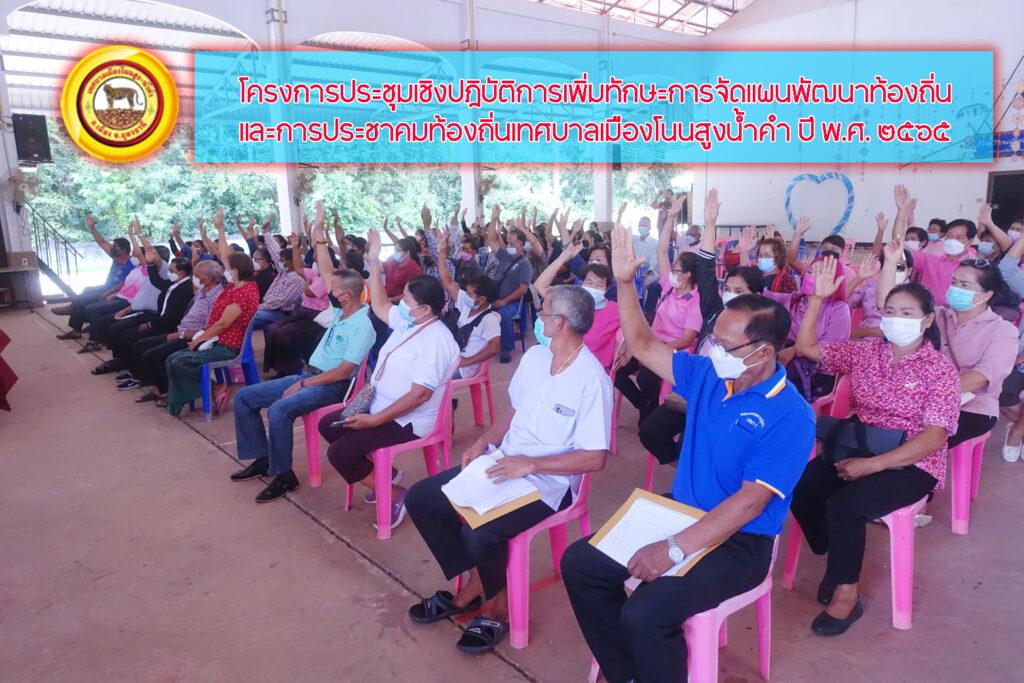 โครงการประชุมเชิงปฎิบัติการเพิ่มทักษะการจัดแผนพัฒนาท้องถิ่นและการประชาคมท้องถิ่น เทศบาลเมืองโนนสูงน้ำคำ ปี พ.ศ. ๒๕๖๕