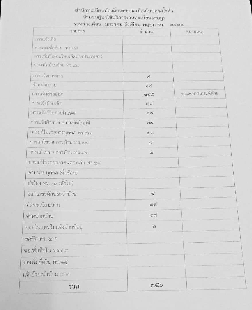 ข้อมูลการให้บริการประชาชน ปี 2563